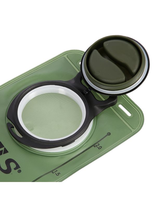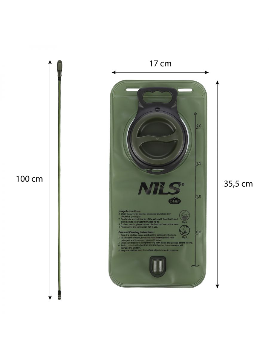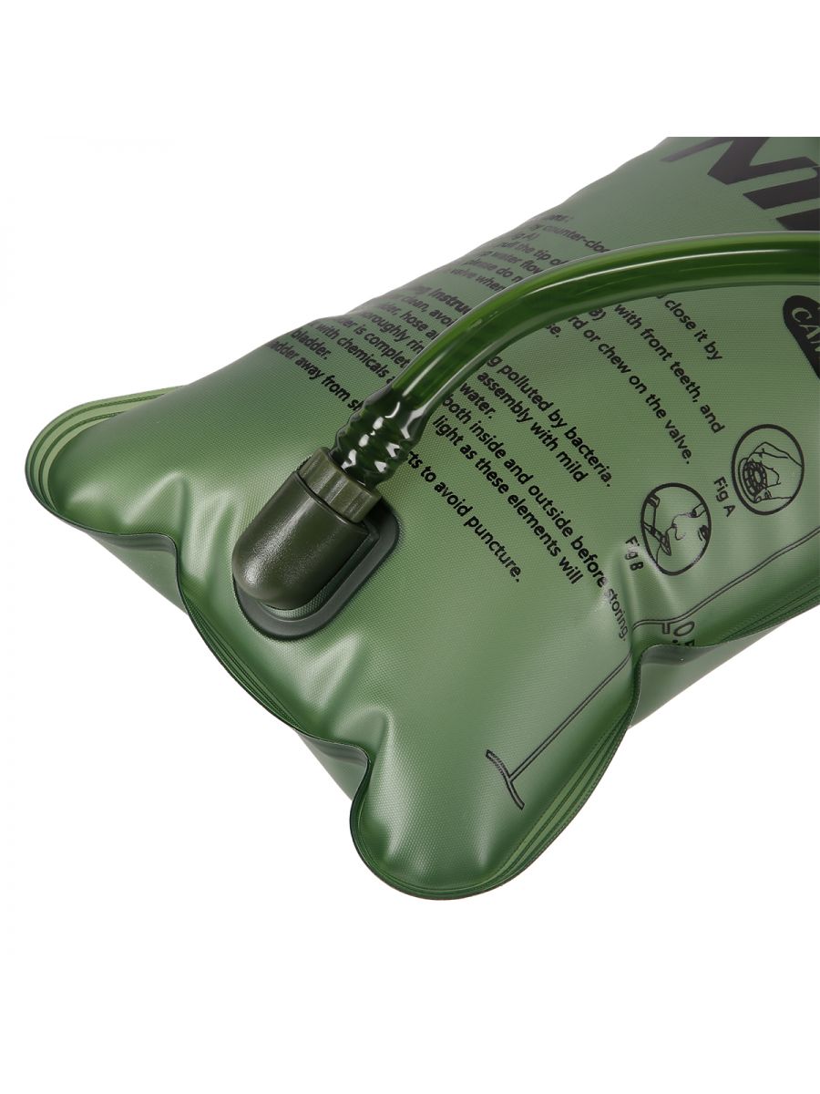 Bukłak NC1720 został wykonany z materiału PEVA, który jest ekologiczny i przyjazny dla środowiska. Solidny zawór główny oraz łatwy system mocowania rurki nawadniającej do bukłaka gwarantują szczelność płynów oraz prostą konserwację całego zestawu. Specjalna konstrukcja ustnika pozwala na picie bez konieczności przechylania głowy. Przed zanieczyszczeniem chroni go specjalna osłonka, a picie możliwe jest przez pociągnięcie ustnika do siebie oraz lekkie uciśnięcie.
