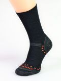 Wełna alpaki dodaje skarpetom niezwykłej miękkości i lekkości, a jednocześnie poprawia ich właściwości izolacyjne. Naturalna struktura włókien sprawia, że materiał ogranicza rozwój bakterii i nie wchłania nieprzyjemnych zapachów, dzięki czemu nawet po wielu godzinach marszu stopy pozostają w pełnym komforcie. Skarpety są elastyczne i sprężyste, dobrze dopasowują się do kształtu stopy, a ich miękka faktura zapobiega podrażnieniom i otarciom.