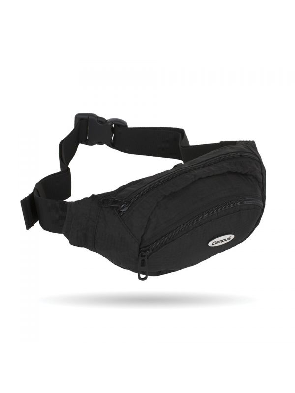 Greno marki Campus to czarna sportowa saszetka biodrowa z paskiem zapinanym na klamrę. Regulowany pasek umożliwia dopasowanie w pasie lub na biodrach czy na ramieniu, a zapięcie na klamrę pozwala na szybkie zdejmowanie i zakładanie. Saszetka posiada trzy kieszenie zapinane na zamek. Materiał, z którego wykonano produkt jest odporny na przetarcia, wytrzymały, a także łatwy w czyszczeniu.