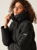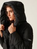 Czarny płaszcz zimowy Nurie marki Regatta łączy w sobie styl z sportowym wyglądem, a jego lekko błyszczący materiał dodaje elegancji. To doskonały wybór na jesień i zimę, dzięki ociepleniu z syntetycznych włókien przypominających puch, które zapewniają optymalną równowagę między wagą a ciepłem. Choć wypełnienie jest niezwykle lekkie, skutecznie izoluje przed zimnem i pochodzi z materiałów z recyklingu.