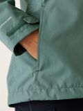 Wnętrze kurtki wykończono siateczkową podszewką, która podnosi wygodę noszenia. W razie potrzeby można skorzystać z praktycznego, regulowanego kaptura chowanego w kołnierzu. Na najważniejsze drobiazgi przewidziano dwie dolne kieszenie zapinane na suwak oraz kieszeń wewnętrzną. Dopasowanie do sylwetki umożliwiają regulowane mankiety oraz dół ze ściągaczem.