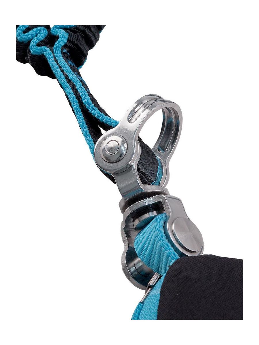 Bardzo komfortowa lonża do via ferrat wyposażona została w krętlik, który eliminuje problem skręcania się ramion podczas przepinania na kolejnych fragmentach stalowej liny. W chwilach zmęczenia można wpiąć się dodatkowym karabinkiem w specjalny uchwyt połączony z krętlikiem – rozwiązanie to pozwala na bezpieczne odpoczynek i szybki powrót do poruszania się po linie asekuracyjnej.