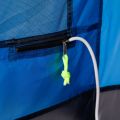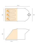W tylnej części znajduje się podwieszana, przyciemniana sypialnia, która pomieści wygodnie trzy osoby i zapewnia lepszy sen dzięki redukcji światła dziennego. Konstrukcja namiotu została zaprojektowana z myślą o bezpieczeństwie – wszystkie zastosowane materiały są odporne na ogień, co zwiększa komfort i spokój podczas użytkowania.