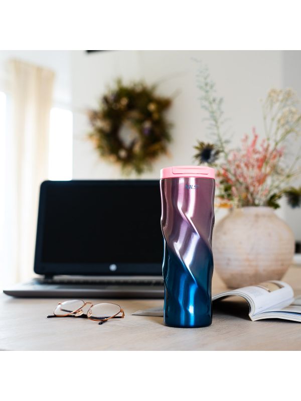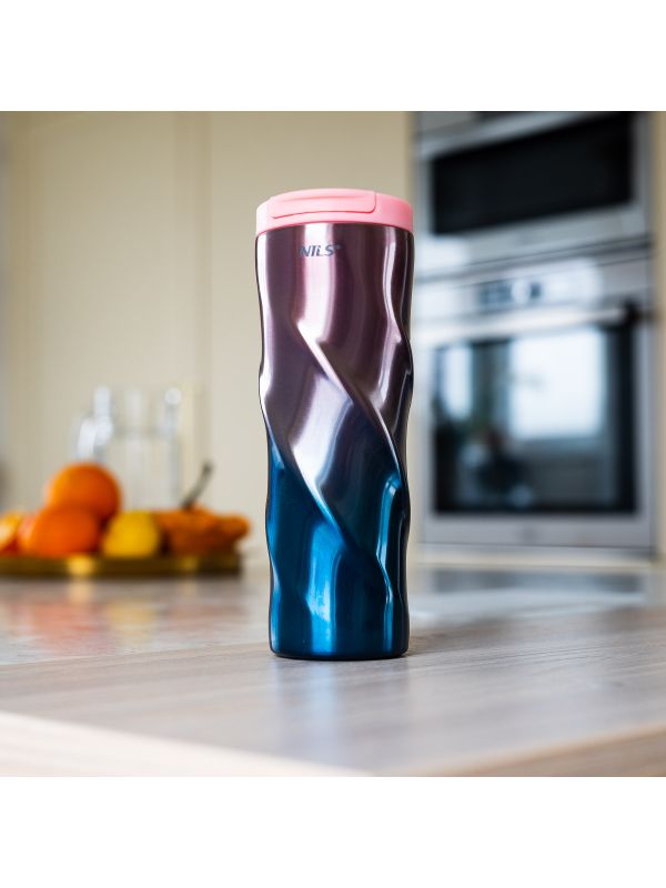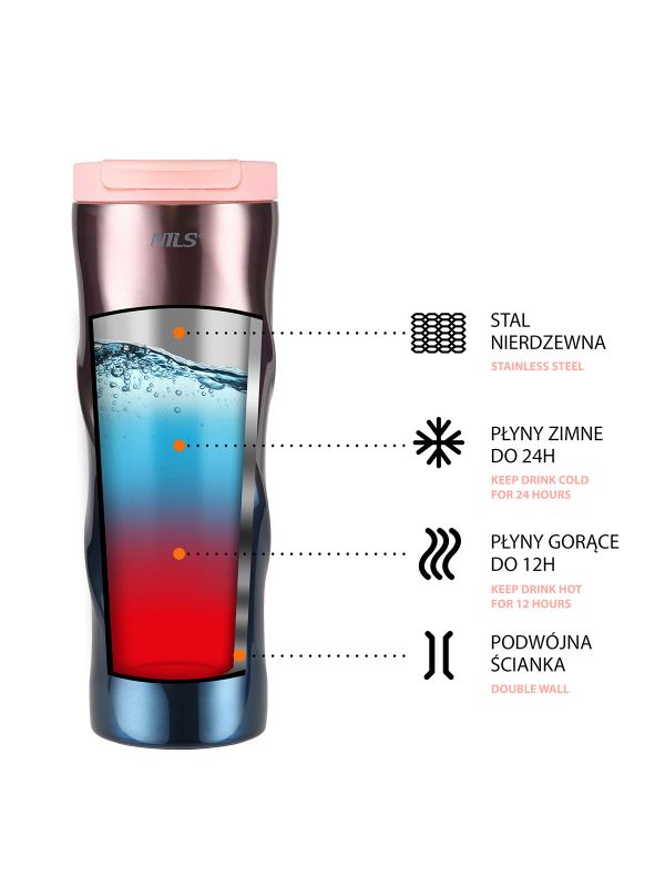 Różowy kubek termiczny o nowoczesnym designie Nils NCB22 wykonany jest ze stali nierdzewnej o podwójnej ściance, dzięki czemu gwarantuje utrzymanie temperatury ciepłych napoi przez 12 godzin, a zimnych przez 24 godziny. Kubek termiczny NCB22 posiada bardzo wygodny system otwierania. Wystarczy pociągnąć do góry za uchwyt otwierania i gotowe. Dodatkowym atutem jest również to, że dolna część kubka posiada antypoślizgową gumę, co zwiększa bezpieczeństwo przed rozlaniem gorącej kawy czy herbaty podczas gdy kubek jest otwarty.