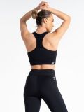 Klasyczny, czarny stanik sportowy marki Dare 2b. Dare 2b Don`t Sweat It to wygodny top odpowiedni dla każdej kobiety kochającej sport. Elastyczny, sportowy stanik w którym spędzisz wiele godzin na siłowni, na rowerze, biegając czy uprawiając jogę. Wykonana z lekkiego materiału, bezszwowa konstrukcja nosi się znakomicie, nigdzie nie uciska. Don`t Sweat It Bra posiada wyciągane wkładki, więc każda kobieta dopasuje go do własnych potrzeb. Materiał posiada antybakteryjne wykończenie, dzięki czemu nawet w wysokiej temperaturze, kiedy ostro ćwiczymy, bakterie nie mają możliwości mnożenia się. Takie rozwiązanie hamuje również powstawanie nieprzyjemnych zapachów. Jeśli więc nie lubisz ograniczeń, cenisz swobodę ruchów, wystarczy że założysz Don`t Sweat It Bra plus ulubione legginsy i możesz zaczynać ćwiczenia.