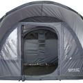 Namiot Regatta Kolima 4 to idealne rozwiązanie dla rodzin lub grupy przyjaciół, którzy cenią sobie komfort, przestrzeń i szybkie rozbijanie namiotu. Dzięki hybrydowemu stelażowi, który łączy w sobie elementy pompowane oraz z włókna szklanego, rozstawienie namiotu jest szybkie i intuicyjne – nawet przy mniej sprzyjających warunkach pogodowych.