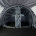 Sercem namiotu jest obszerny przedsionek z dużymi przejrzystymi oknami, które wpuszczają do środka mnóstwo naturalnego światła, zapewniając jasne i przestronne wnętrze. To idealne miejsce na wspólne posiłki, przechowywanie bagażu czy odpoczynek podczas deszczowej pogody.
