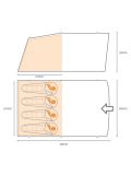 W tylnej części znajduje się podwieszana, przyciemniana sypialnia, która pomieści wygodnie cztery osoby i zapewnia lepszy sen dzięki redukcji światła dziennego. Konstrukcja namiotu została zaprojektowana z myślą o bezpieczeństwie – wszystkie zastosowane materiały są odporne na ogień, co zwiększa komfort i spokój podczas użytkowania.