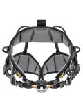 Przedni, otwierany punkt wpinania pozwala na łatwe podłączenie oraz optymalne rozmieszczenie sprzętu asekuracyjnego. Zintegrowany przyrząd zaciskowy croll l znacząco zwiększa efektywność podczas podchodzenia po linie. Uprząż wyposażono w boczne, metalowe punkty wpinania, praktyczne uchwyty sprzętowe i szlufki na dodatkowe akcesoria, co ułatwia organizację i transport niezbędnych narzędzi w ciągu całego dnia pracy.